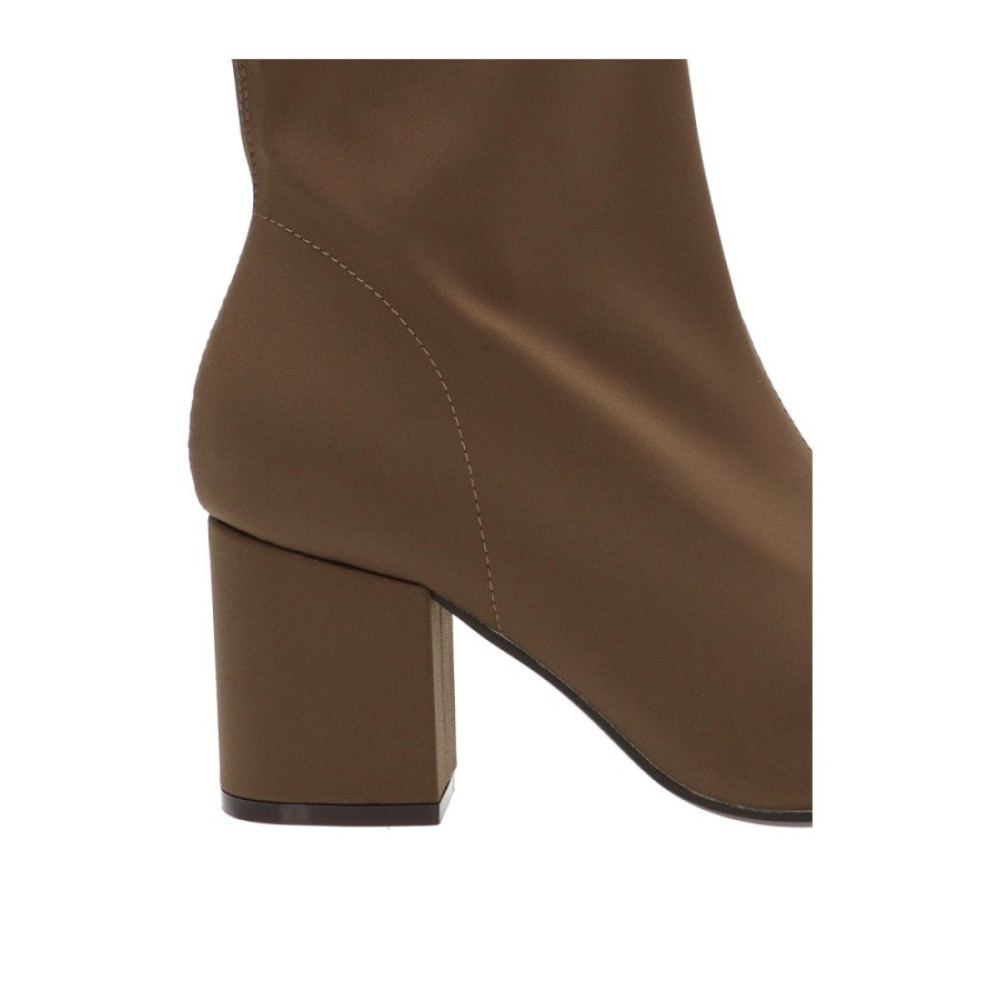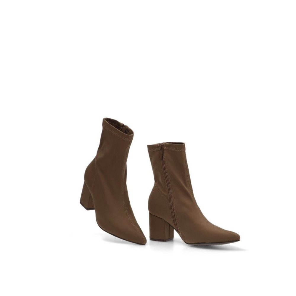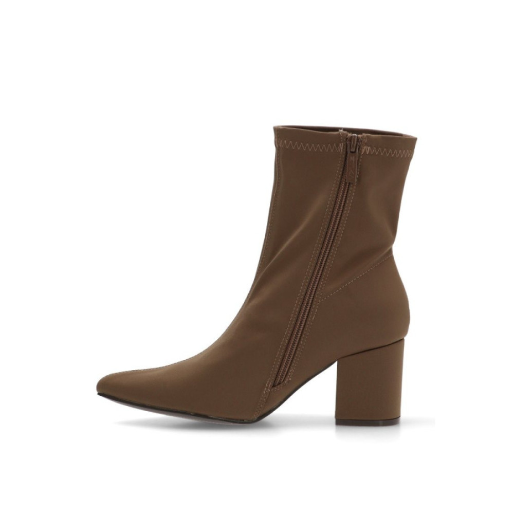 Este botín, en un atemporal y versátil color taupe, destaca por su material exterior de lycra, que se ajusta perfectamente a la forma de tu pierna. Su diseño weekend es ideal para cualquier ocasión, desde una salida con amigas hasta un evento más formal. La silueta esbelta y la caña de 21 cm, que se adapta como un calcetín, estilizan la figura y aportan un toque de modernidad.