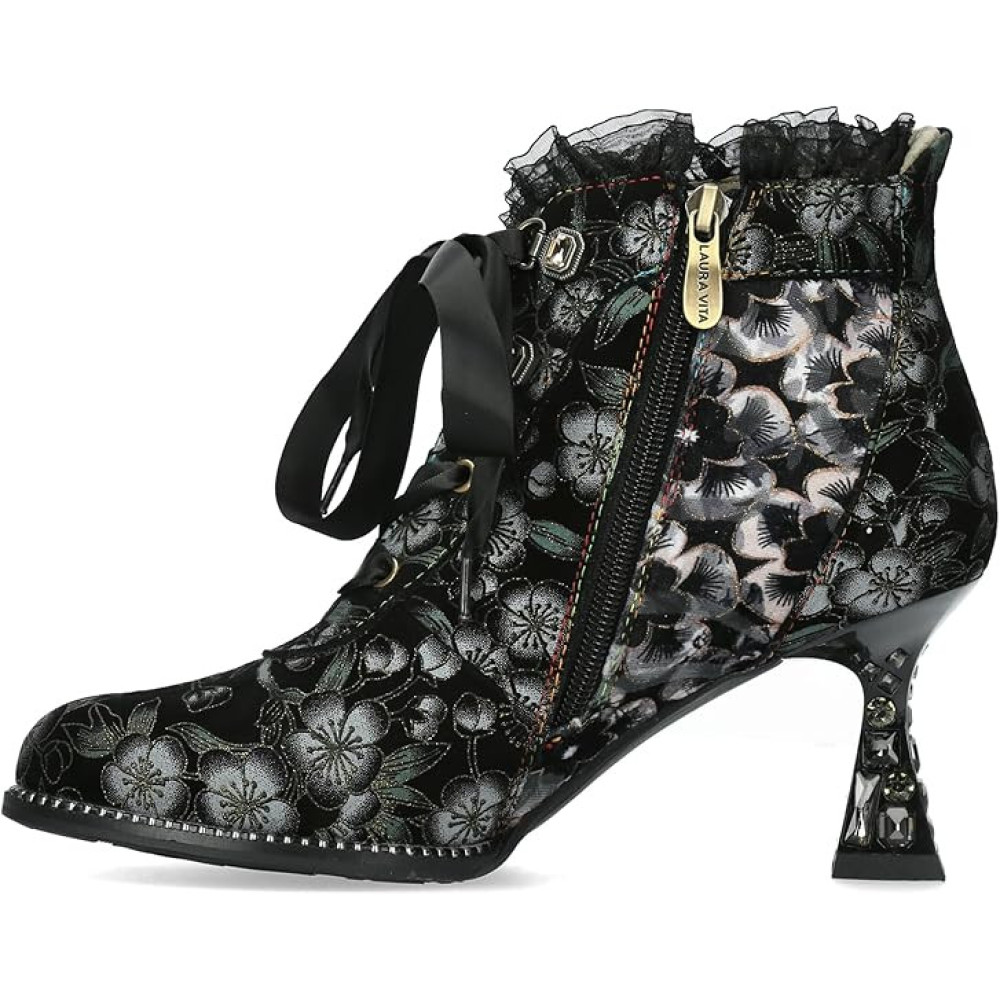 Estas botas se caracterizan por su diseño original y cuidado, combinando piel y textil con detalles decorativos.