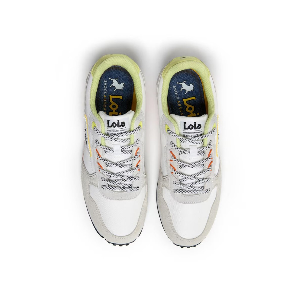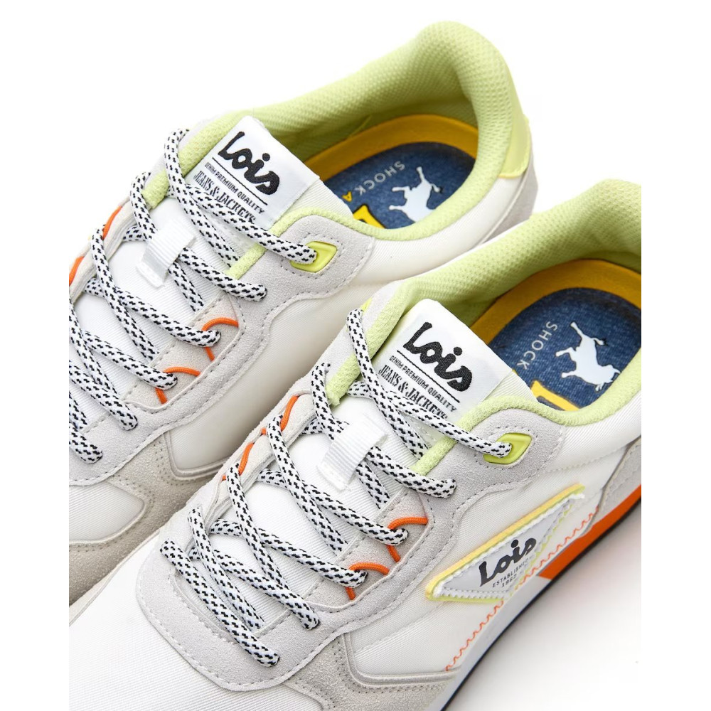 El logo “Lois” en el lateral aporta personalidad, mientras que la suela con detalles en negro y naranja añade carácter y un aire dinámico. Cómoda y versátil, es perfecta para darle un punto de color a tus looks diarios y caminar con estilo y buena vibra en cada paso.