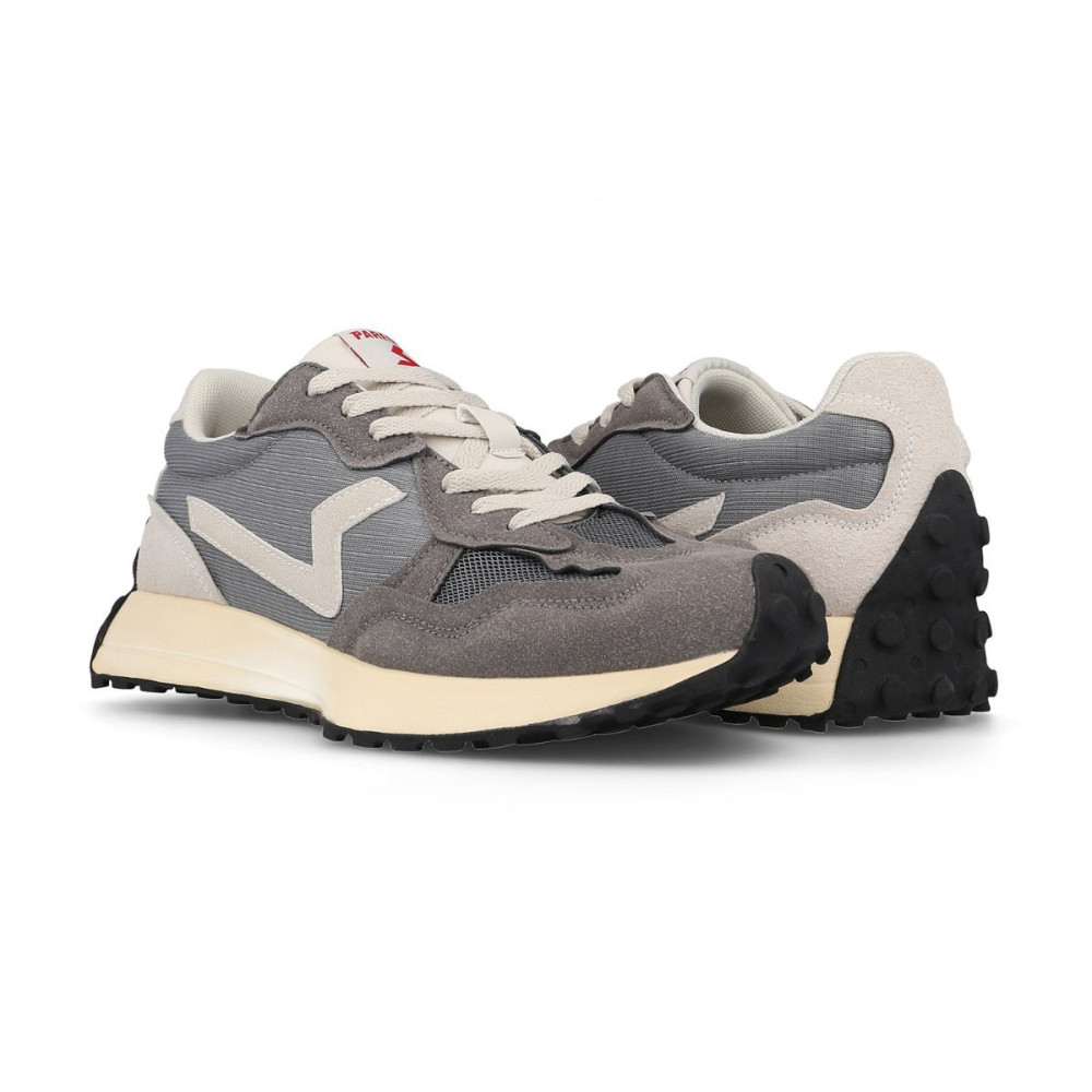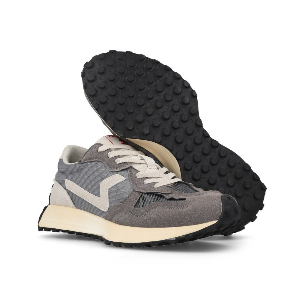 - Color: Gris con detalles en gris claro y suela en tono crema.