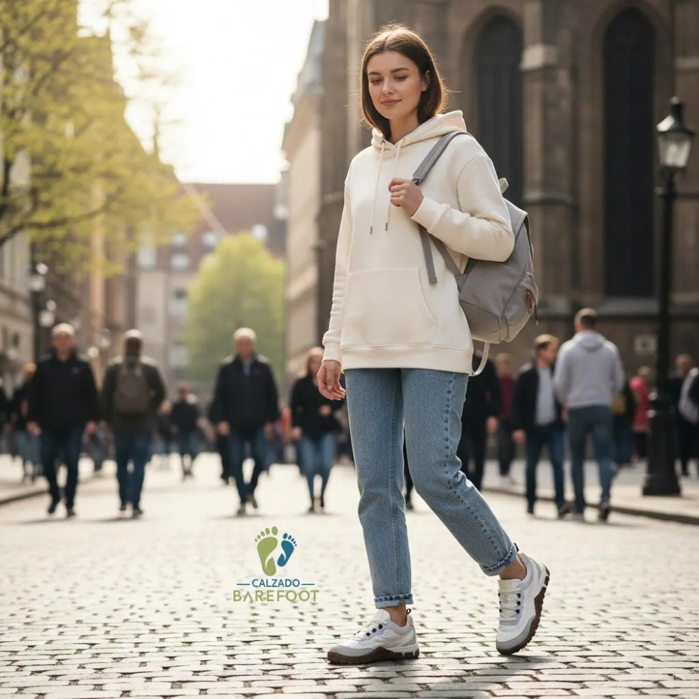 La Coqueflex Enzo White es una zapatilla de diseño contemporáneo que combina la estética de las tendencias actuales con los principios fundamentales del calzado barefoot. Fabricada íntegramente en España, este modelo está pensado para quienes buscan comodidad absoluta sin renunciar a un estilo ligero y versátil.
