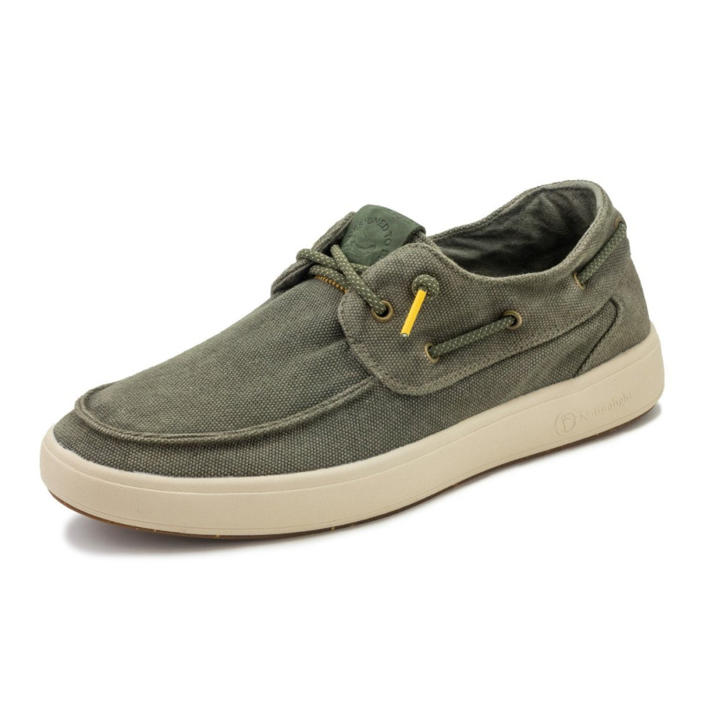 Los Oster son unos náuticos ecológicos para hombre de la línea Naturalight, confeccionados en algodón orgánico con una suela de virutas de madera reciclada y cordones elásticos para un ajuste cómodo y rápido.