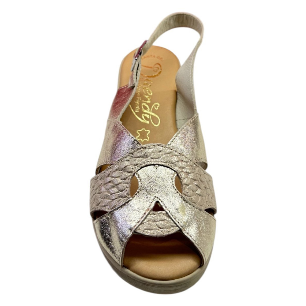 - Ajuste Personalizado: Sistema de cierre mediante hebilla lateral metálica que permite adaptar la sandalia perfectamente al tobillo.
